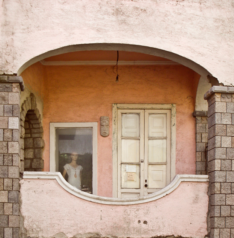 | Davvero interessante lo scorcio che hai fotografato, sembrerebbe il negozio di un sarto ma quella maschera appesa, la lampadina rotta (me la immagino così) e la porta saldamente chiusa invitano a girare al largo, solo i fogli appesi alla porta comunicano forse qualcosa di più chiaro a chi osserva e mi piacerebbe sapere cosa c'è scritto. |