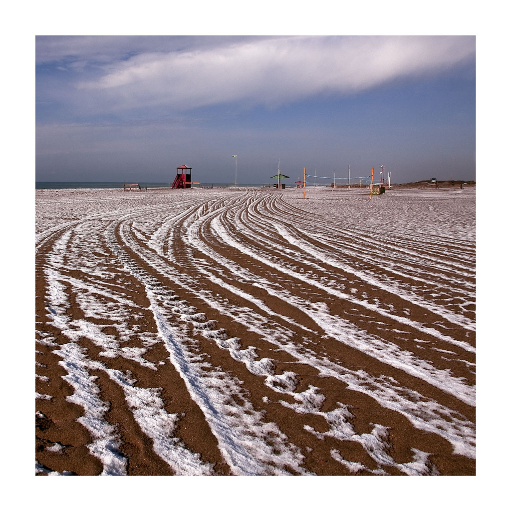 Probabilmente hai ragione sul centro d'interesse della foto. Per me il centro d'interesse era prorpio nelle linee sulla sabbia evidenziate dalla neve. la spiaggia con torretta e tipica rete per la volley un contesto inusuale. Sicuramente con meno elementi, come osservi, avrebbe reso di più.
