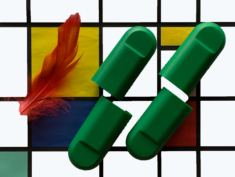 Grazie delle tue parole. i ditali (tappi di un medicinale) dovevano essere di quel colore e messi in quel modo in modo da riprendere il colore verdino a sinistra