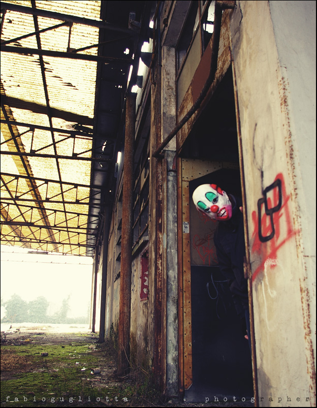 Questa immagine si regge fra il contrasto della maschera -apparentemente giocosa- e le rovine, e malgrado la minore visibilità, è proprio a queste che la maschera allude, divenendo simbolo di morte.