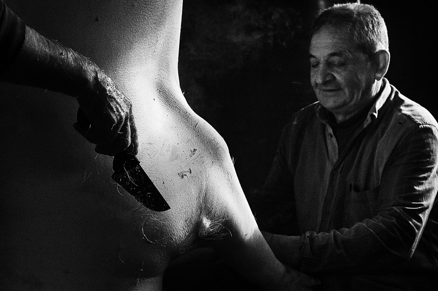 | caracol ha scritto: | | E qui invece il colore non serve, è un b/n stupendo che racconta un attimo straziante eppure dolce. Non c'è la freddezza del mattatoio, ci vedo la necessità di recidere un legame che si era formato tra animale e allevatore. |