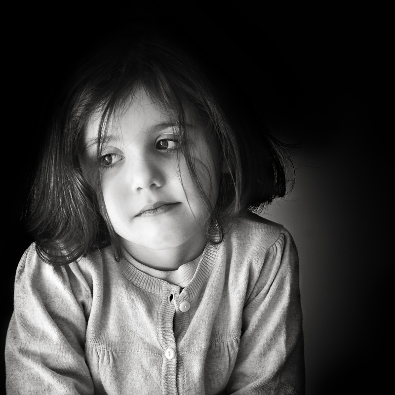 Anche stavolta luce naturale?sembra che la bimba sia illuminata dal basso,in alto i capelli si fondono con l'oscurità