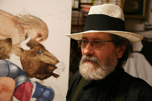 a mio avviso l'artista all'opera.... un momento della sua intensità spogliato del vestito da cerimonia , sporco di colore con i pennelli in mano oppure concentrato a modellare le forme...
