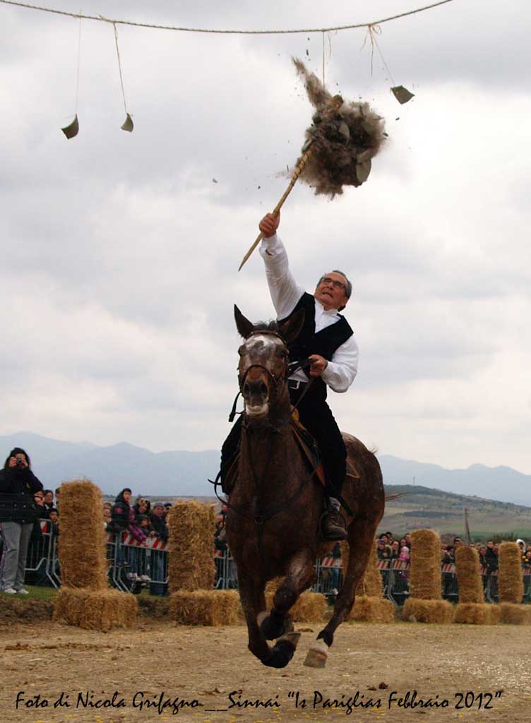 Molto bello il momento dello scatto e la velocità di ripresa che blocca nel giusto grado il movimento. E bella anche l'espressione intenta del cavaliere. Buono il punto di ripresa basso che enfatizza il momento ed il gesto, oltre a ridurre la presenza del pubblico ad un ruolo defilato e poco ingombrante ma pur sempre sufficientemente descrittivo della manifestazione in cui è inserito l'evento. Un po' di disturbo lo arreca la figura della fotografa all'estrema sinistra dell'inquadratura, per il suo distinguersi per gesto e posizione dal resto della folla. La luce, ahimè, non era favorevole, ma credo che tu sia intervenuto a "scaldare" efficacemente la scena. Perché Farfallina?