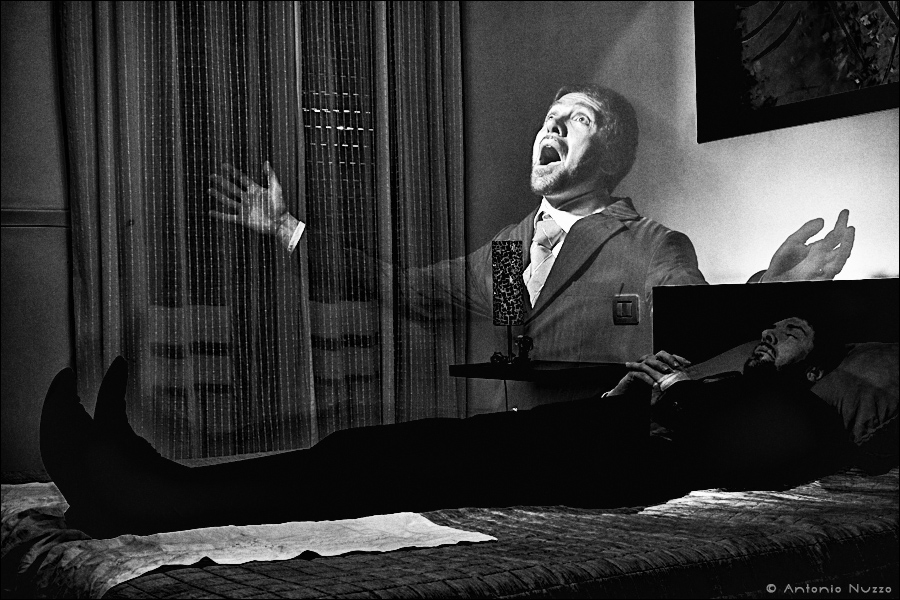 Ho eseguito due scatti entrambi con tempi lunghi e flash sulla seconda tendina, dove nel primo il soggetto è rimasto immobile e nel secondo si è alzato. In post poi ho caricato le immagini su due livelli e sul secondo livello quello dove il soggetto si alzava ho cambiato il metodo di fusione in sovrapponi.