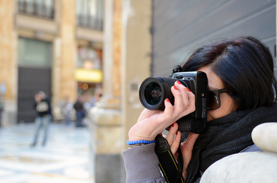 Dal titolo non credo fosse questa la tua intenzione per cui penserei ad un taglio più mirato sulla ragazza e fotocamera annessa...