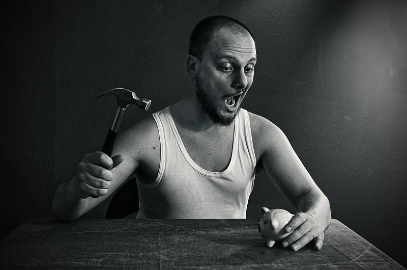 Anche il maialino così piccolo risente della crisi: poche monete.