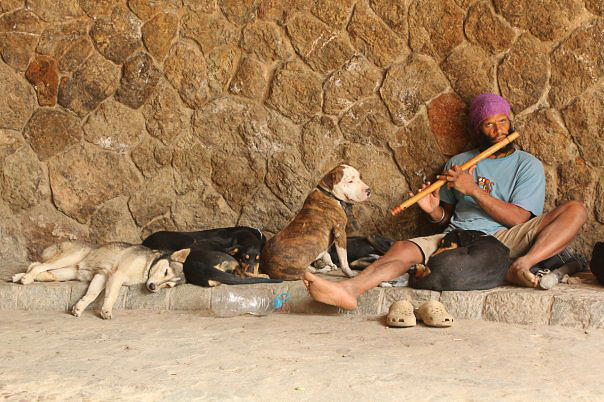 Mi piace il momento colto: si viene a creare una sorta di climax ascendente, da sinistra verso destra, con le posture dei cani accovacciati e l'uomo.