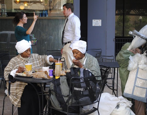 Mentre riprendevo una buffa composizione di due signore sedute al tavolo mi sono accorta che dietro succedeva qualcos'altro...mi trovavo a Chicago l'anno scorso.