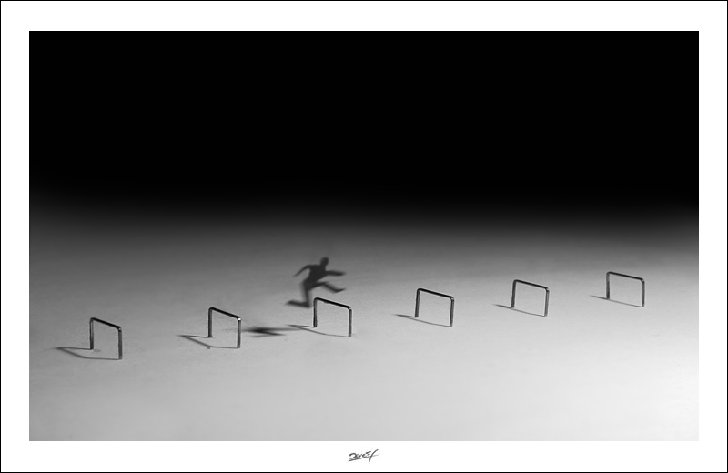Sagoma dell'atleta ritagliata alla quale ho applicato un filo sottilissimo in nylon quasi invisibile (eliminato in post).