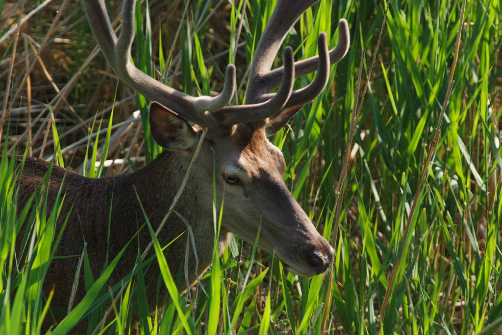 cercavo i caprioli, sento dei rumori ogni tanto ma non capivo di cosa si trattasse, pensavo il parente piccolo invece dopo un pò intravedo il suo palco in velluto; l'immagine è stata scattata quando è uscito per andare a fare merenda