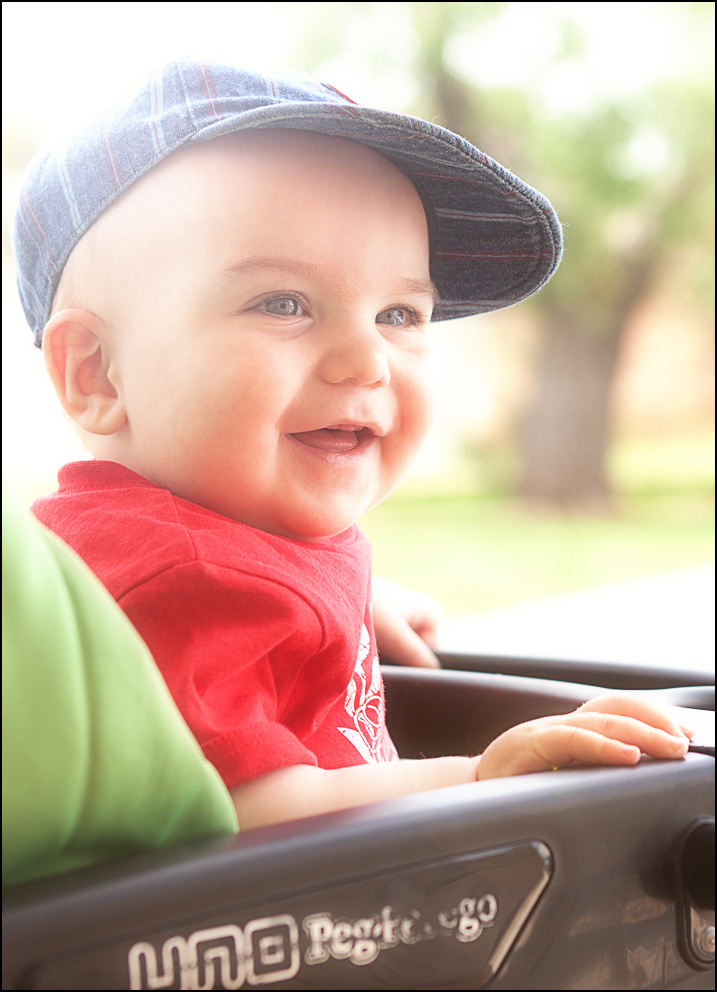 avrei visto meglio un taglio (quadrato?) per evitare di includere la scritta del passeggino che distrae dalla bellezza del bimbo..
