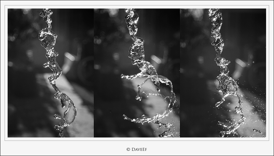 Uno sfondo che avesse compromesso meno la leggibilità dei getti d'acqua e il presentare il trittico tenendo separati anziché contigui i tre scatti avrebbe, ritengo, migliorato il risultato.