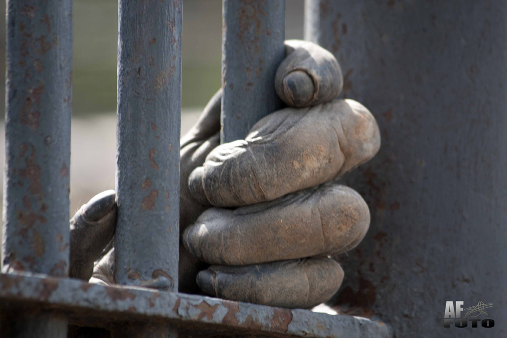 La mano di uno scimpanzè in uno zoo...