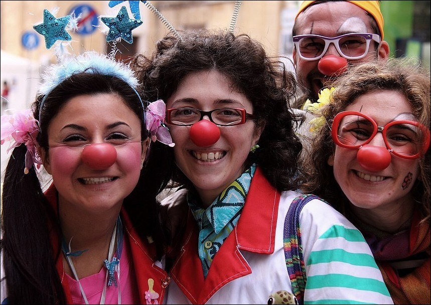Quelli del “Naso rosso”, un’associazione di ragazzi, volontari, che si prodigano per portare un sorriso , un po’ di conforto ai bambini ricoverati negli ospedali pediatrici e nelle case di riposo di tutt’Italia.
