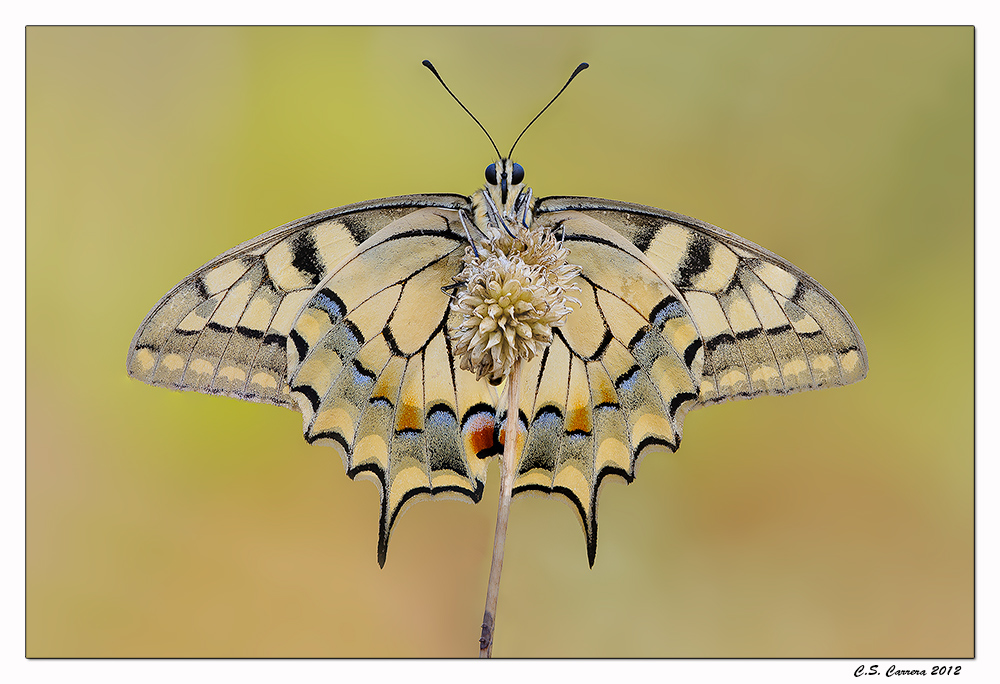 Un macaone elegante immortalato su uno sfondo delicato che esalta ulteriormente la bellezza delle sue ali. Wink