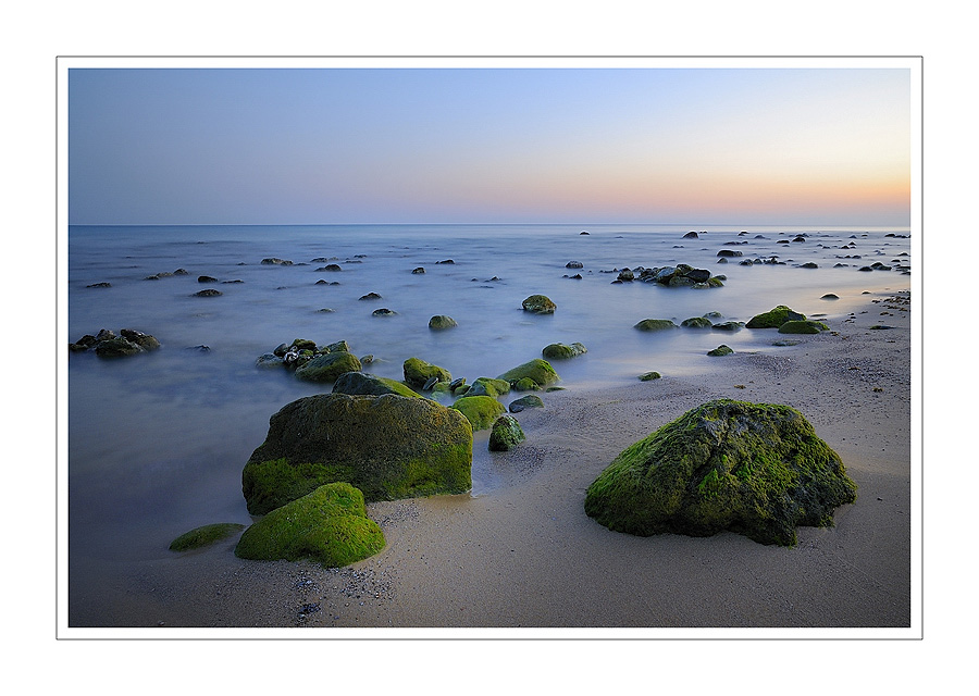 Immagine rigorosa nella composizione dove ogni elemento occupa il posto più adatto nel fotogramma. Molto efficace lo sbilanciamento compositivo a favore del mare, così come eccellente è la gestione della luce che ha permesso di registrare un'immagine leggibile in ogni suo punto, evitando, di fatto, ombre chiuse sui massi (come spesso succede). Ottima la nitidezza percepita e la sensazione di profondità regalata alla scena dalla impeccabile pdc. Un'ultima nota di merito per le delicate tinte d'insieme dove irrompe, senza però disturbare, il verde intenso del muschio.