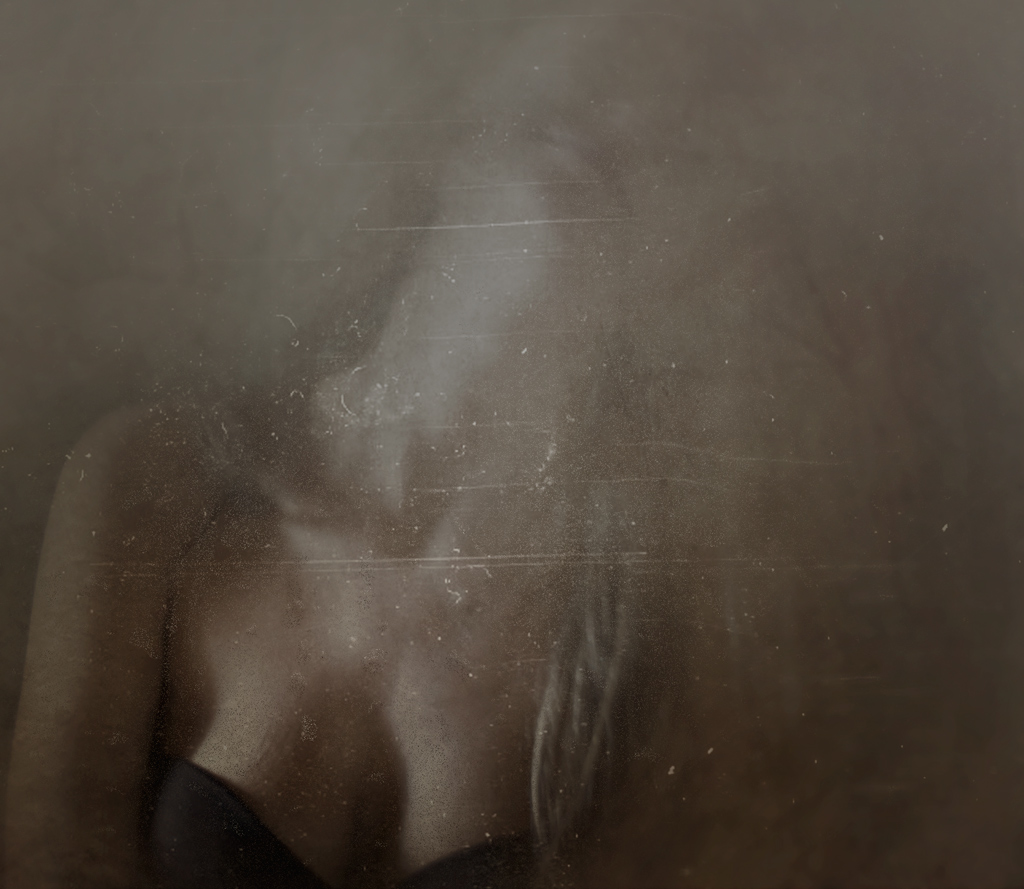 Uno stampa che profuma di fascino e seduzione...facendo immergere l'osservatore in pensieri che cercano di diradare la nebbia che avvolge il volto......oppure che contrastano con la grande fisicità del seno mostrato quasi di contraltare in primo piano.....