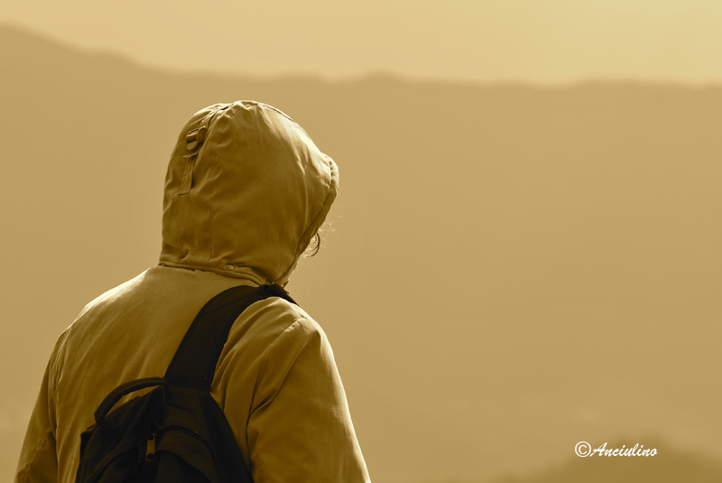 Soggetto decontestualizzato (non è un a street); preso di spalle (non è un ritratto); il panorama non si vede (non è un paesaggio).