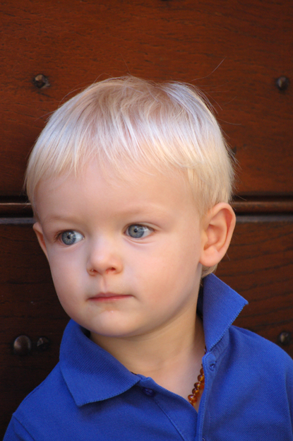 | avrei posizionale meglio il soggetto all'interno dell'inquadratura optando per la classica collocazione degli occhi sulla linea del terzo superiore; la messa a fuoco non è precisa e vista la giovane età del soggetto avrei cercato un sfondo meno cupo e comunque abbastanza lontano dal bimbo da poterlo sfumare con un'apertura maggiore |