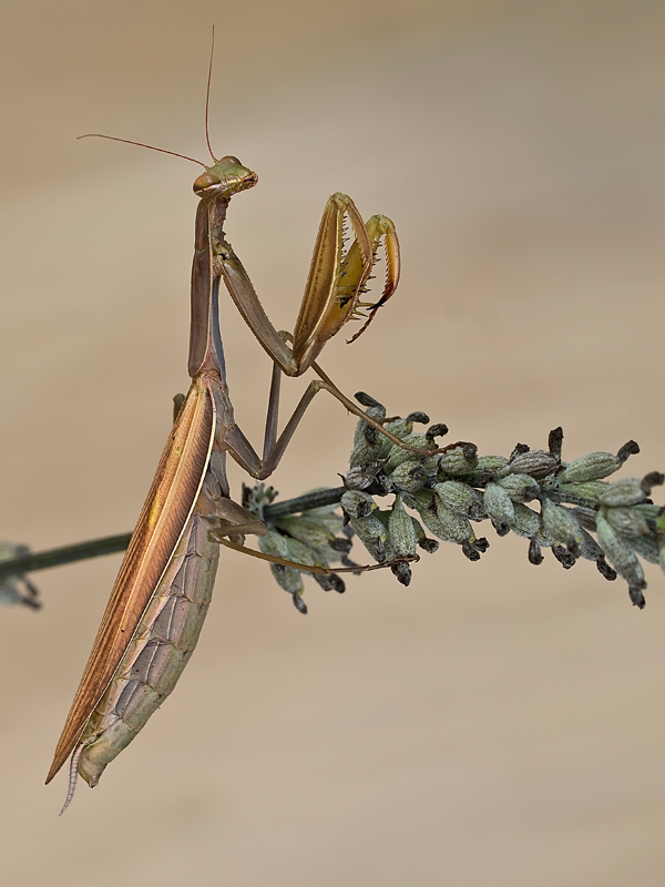 Piacevole la tonalità dello sfondo il quale s'abbina alla Mantide. |