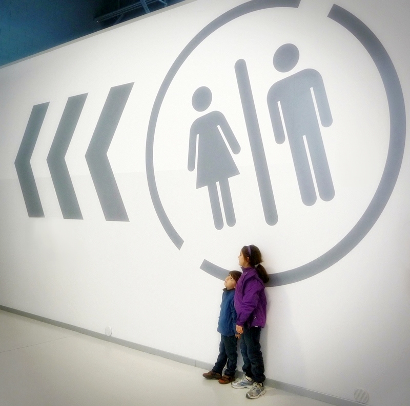 Mi piace l'accostamento che hai saputo cogliere. Bel colpo d'occhio...titolo o non titolo (ma uno bisogna pur darlo, anche se spesso superfluo). Mai vista una indicazione di WC così appariscente, quasi...invitante!  _________________ Ilio |