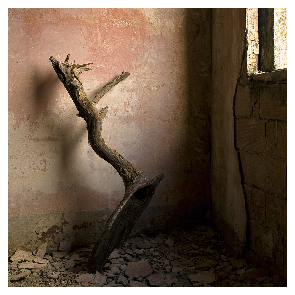 ... ripercorrendo il percorso della luce, ometterei la pavimentazione per focalizzare l'attenzione sul dialogo tra il tronco e la voce narrante.