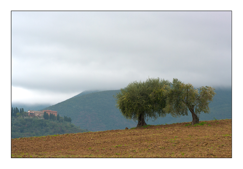 Il titolo è chiaramente forzato, ma questi ulivi, che ho spesso fotografato, mi hanno sempre ricordato una coppia seduta ad osservare la valle, in silenzio, con la testa di lei appoggiata sulla spalla del compagno.