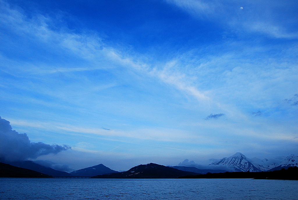 Più che per una utopica volontà di preservare la realtà del momento, ho preferito mantenere l'atmosfera nettuniana primo per la sua peculiarità, secondo perchè ben commenta, a mio parere, il particolare dialogo tra le montagne innevate lo specchio d'acqua e il cielo infarcito di nubi (con la luna a fare da accento sul cucuzzolo più alto).