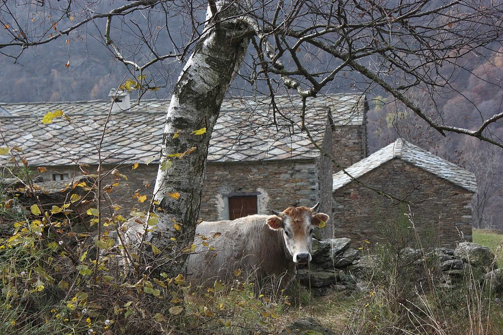 bella l'uniformità dei colori giocata tutta sul grigioverde (tranne la mucca) che infonde un senso di pace e tranquillità, tipico dell'ambiente montano.