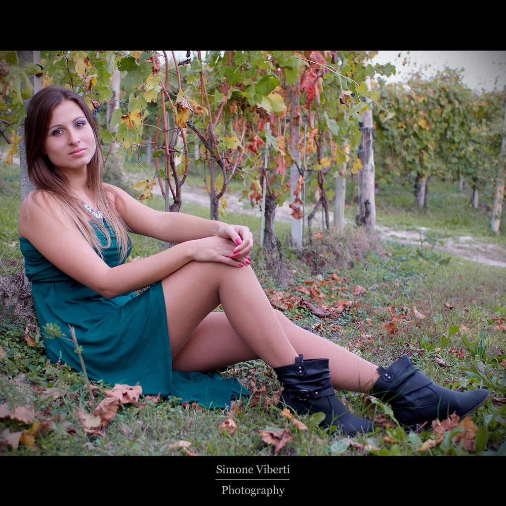 | Non essendo un esperto non posso farne un esame tecnico, ti posso solo dire che mi piace molto ! Mi piacciono i colori autunnali della vite, il colore verde (petrolio ?) del vestito, lo sguardo rilassato della ragazza, la sua posizione, la composizione della foto  ... |