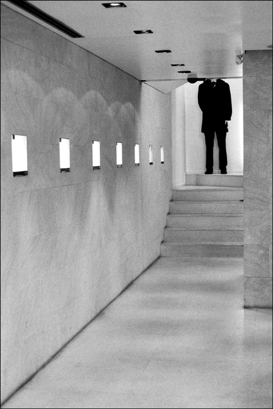Bella anche la serialità delle "feritoie" chiare sul muro e di quelle scure (ottimo contrappunto) sul soffitto.