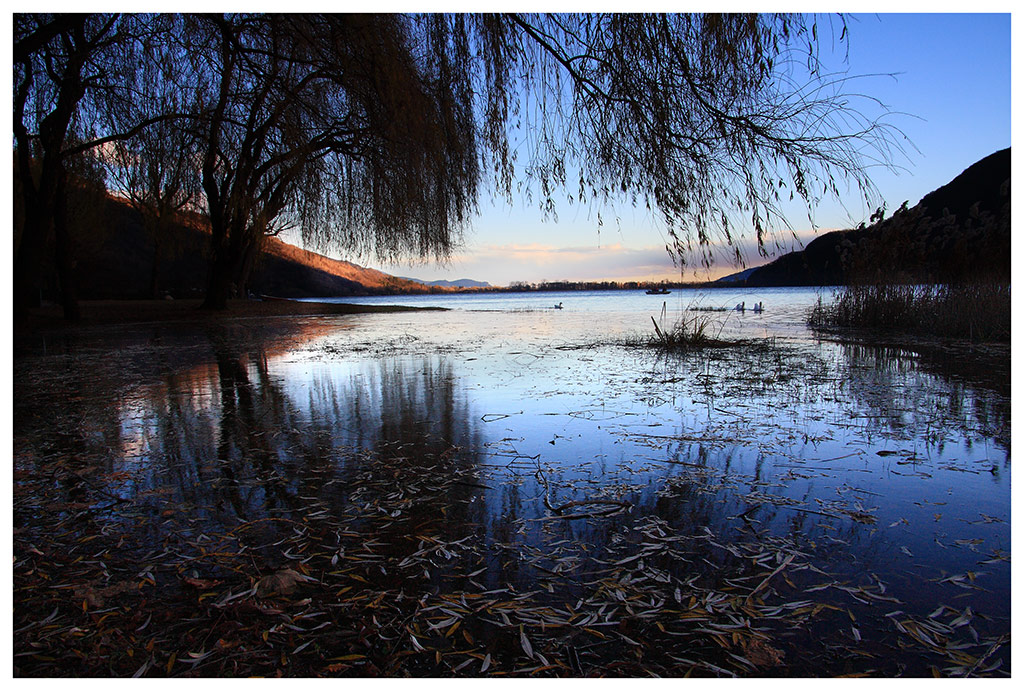 Anche io la trovo molto gradevole, un bellissimo paesaggio racchiuso nella cornice naturale creata falle fronde dell'albero e dalle foglie che galleggiano sul primissimo piano.