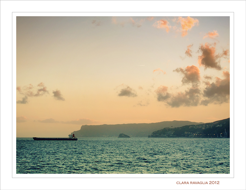 Un cielo bellissimo, caldo.. dove leggeri si rincorrono frammenti di nuvole. Un mare increspato, denso nel contrapporsi alla leggera dimensione celeste. In questo scenario stupendo un viaggio ha il suo inizio...