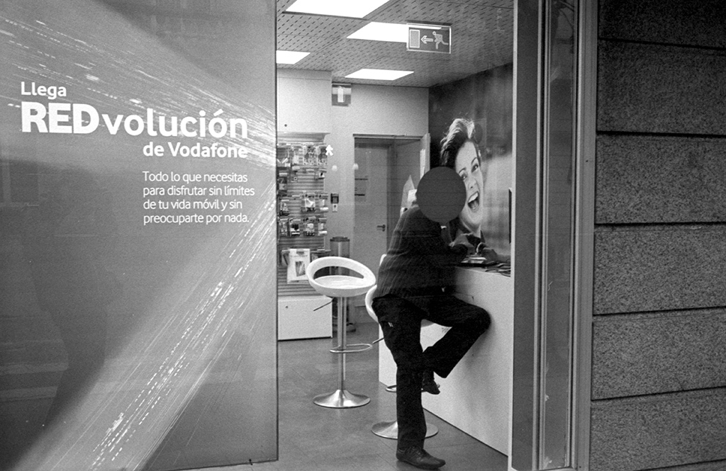 Unica incertezza la scelta del taglio orizzontale: personalmente avrei optato per una ripresa verticale, così da limitare la presenza delle scritte e dei riflessi alla sinistra del fotogramma, e per dare più aria ai piedi del soggetto.
