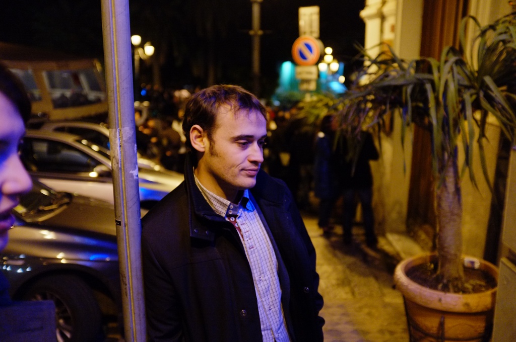 Mmh... puliti i 2500 iso della Fuji X100, colgo un'assonanza labile tra i colori del cartello di sosta vietata e le luci sul viso del ragazzo, cosa che sarebbe risaltata di più con un'inclusione maggiore della ragazza a sx...