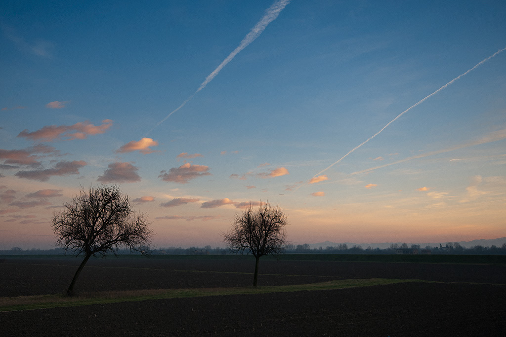 | Perretta Giuseppe ha scritto: | Sono davvero tanti gli elementi che arricchiscono questa immagine: le nuvolette rosa,le scie parallele, il tappeto verde per i due protagonisti... Unico neo, a mio avviso, la sottoesposizione della parte bassa, ma credo che si possa recuperare. Complimenti.