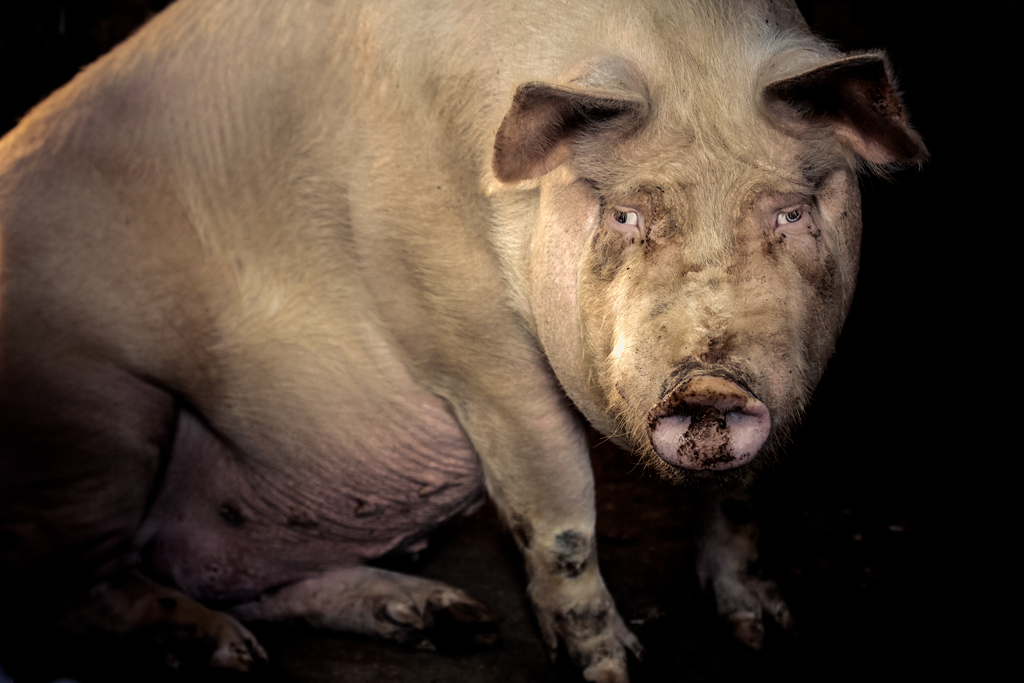 Questo tipo di ritratto mi piace, peccato per aver tagliato (il maiale non me ne voglia) le zampe, avrei lasciato un pochino d'aria.