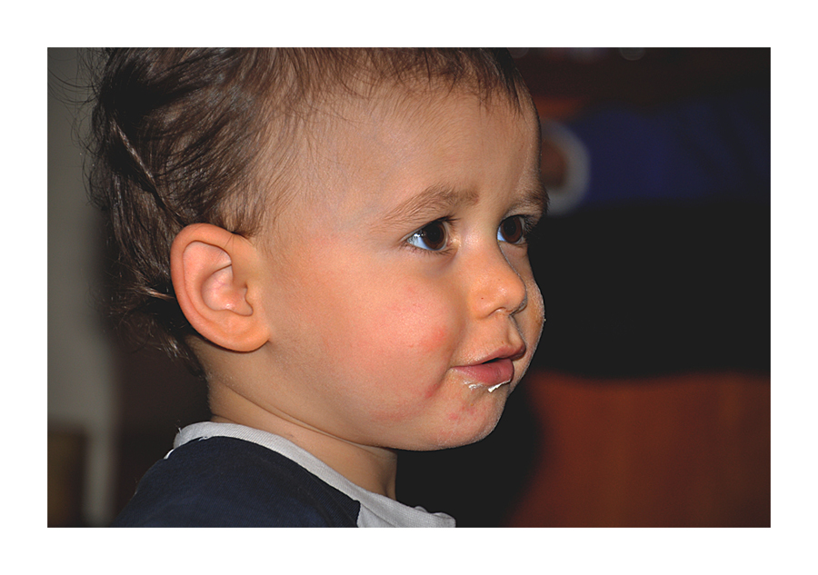 Era con le fragole? vedo delle macchiette rosse sul viso ... comunque bellissima espressione e ... cresciutissimo