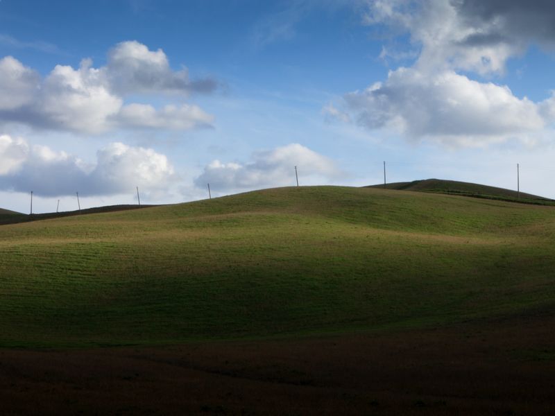 Il verde è per definizione un colore rilassante. Abbinato poi ad un cielo con delle belle nuvole definite infonde un senso di pace e tranquillità.