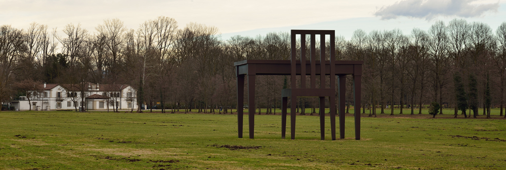 L'opera si chiama "Lo scrittoio" ed è di Giancarlo Neri, la sedia è alta 10 metri e il tavolo 7 metri e mezzo.