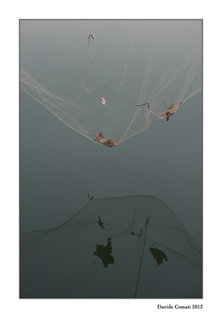..di un cader sospeso, mi ricorda un mio vecchio reportage, ma qui è una rete a fermare la caduta di queste ultime foglie..Bellissimo il riflesso che ne restituisce la forma. Forse la superficie dell'acqua un po' meno anonima.. Bella Davide. Complimenti.