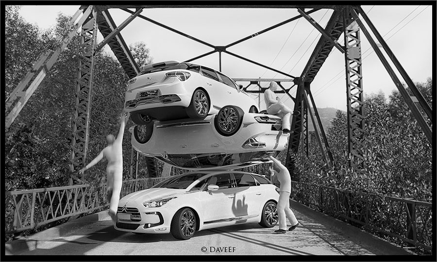 Le 3 Citroen ed i 3 personaggi sono realizzati in 3D