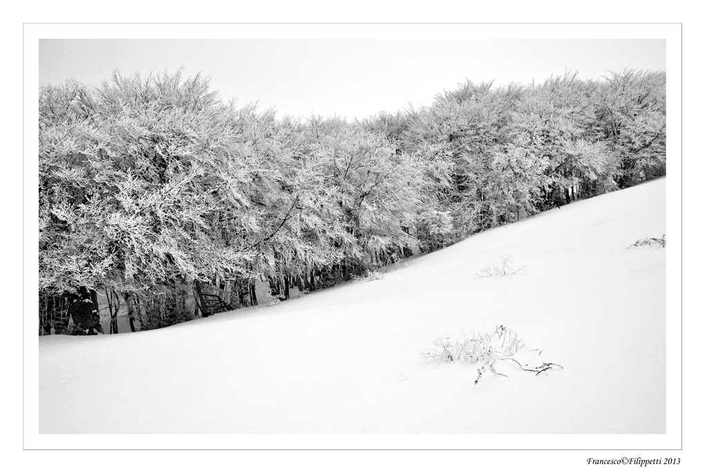 L foto mi appare penalizzata (almeno sul mio monitor) da una non perfetta nitidezza della parte alberata e da una scarsa leggibilità della parte innevata.