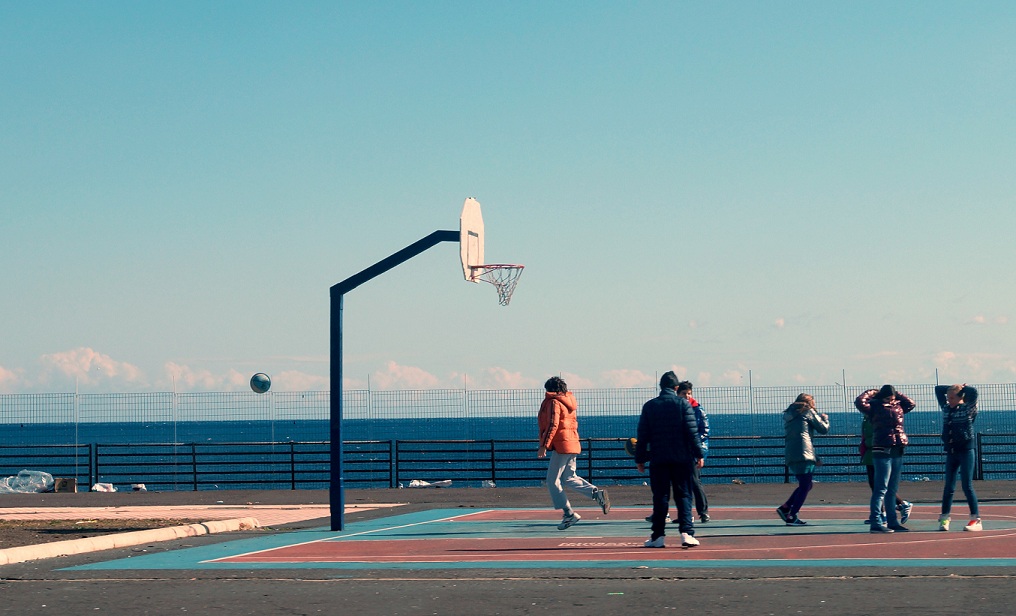 la palla che scappa via, congelata casualmente sul filo della rete di recinzione (quasi sospesa), fa sorridere..