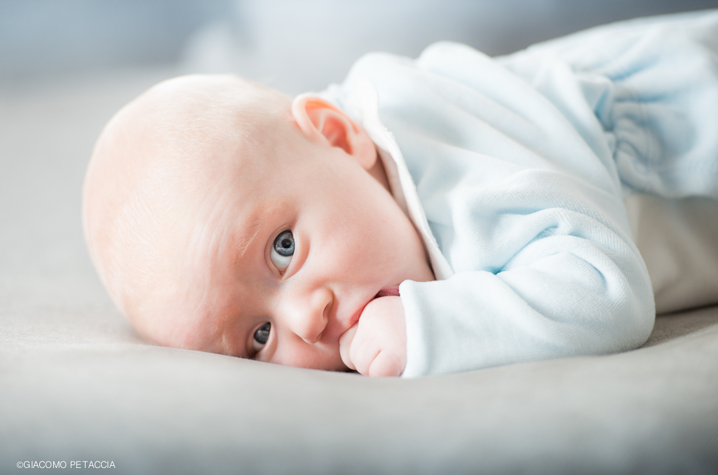Smile lo sguardo e quella manina in bocca sono di una tenerezza disarmante. la luce forte e la ridotta pdc sono ottimi strumenti per esacerbare l'atmosfera delicata e sognante che pervade questo romantico scatto. la chicca è il rimando di colore tra gli occhi e la tutina di questo campioncino Wink