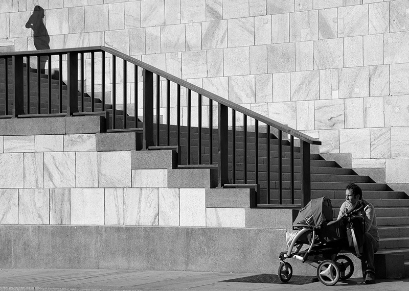 Splendida la resa e buono il BN (solo un pelino grigio). I soggetti posti agli angoli opposti ci stanno, ma l'ombra femminile è troppo al limite. Un po' pesantino il parapetto della scalinata. Impressioni soggettive naturalmente.