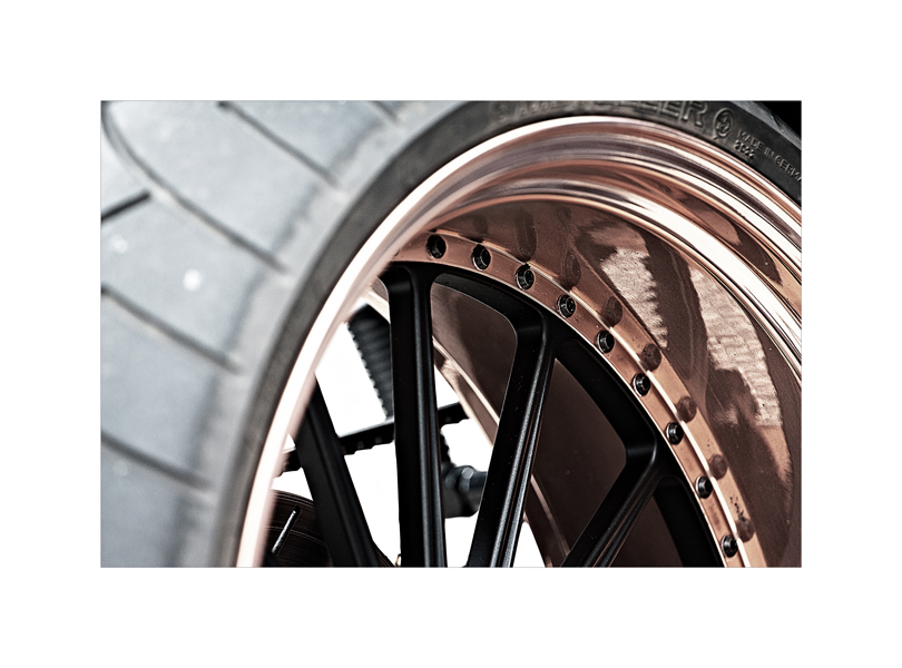 Il pneumatico con le sue macchie toglie molta visibilità al cerchio col suo riflesso....