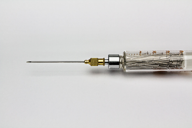 Sempre sorprendente e mai banale. Siringa non monouso e preparato metallico che avrà meno probabilità del celeberrimo ricco rispetto al cammello di passaggio per la cruna dell'ago ( di evangelico scritto) , di fluire al destinatario. Ho letto la tua intervista, ops... e quella a Mister Solo su Fotocult... del mese ed è stato un piacere!