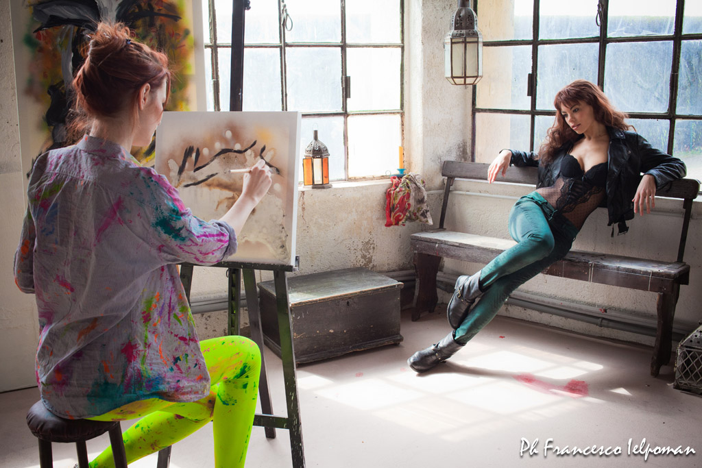 Davvero ottima. Indipendentemente se reale o costruita, la scena è ricca di dettagli e di colore, come si conviene allo studio di una pittrice. Certo che pur non conoscendo l'arte moderna quello che vedo nel quadro non riproduce la posa della modella. Certo che sporcarsi di vernice anche dietro la camicia non è facilissimo. Ma in ogni caso mi piace.  _________________ Gianluca - www.gianlucabocci.it